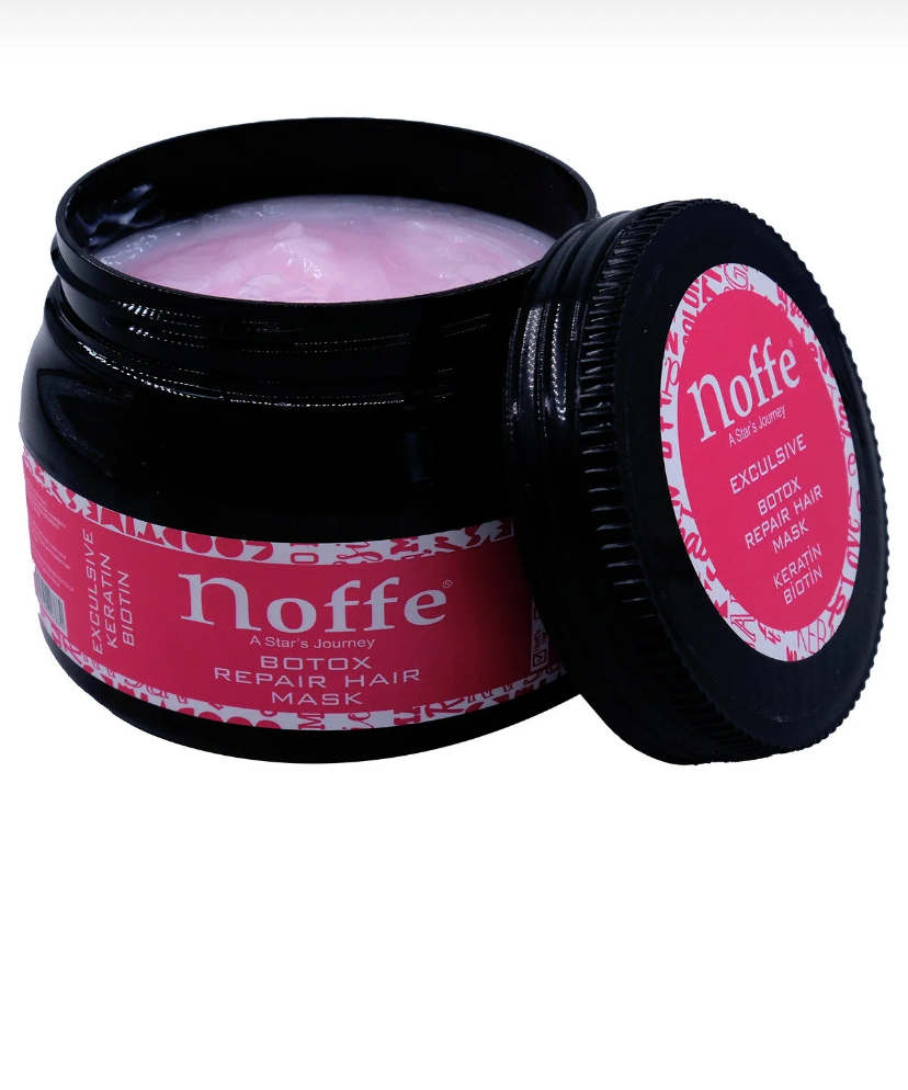 Noffe Botox Repair Hair Mask, hasar görmüş, kuru ve yıpranmış saçlar için özel olarak geliştirilmiş yoğun onarıcı saç maskesidir. Botoks etkili formülü; saç tellerini derinlemesine beslemeye, onarmaya ve güçlendirmeye yardımcı olur. Düzenli kullanımda saçın daha sağlıklı, yumuşak, parlak ve güçlenmiş görünmesini destekler. Elektriklenmeyi azaltır ve saçın daha kolay taranmasını sağlar.